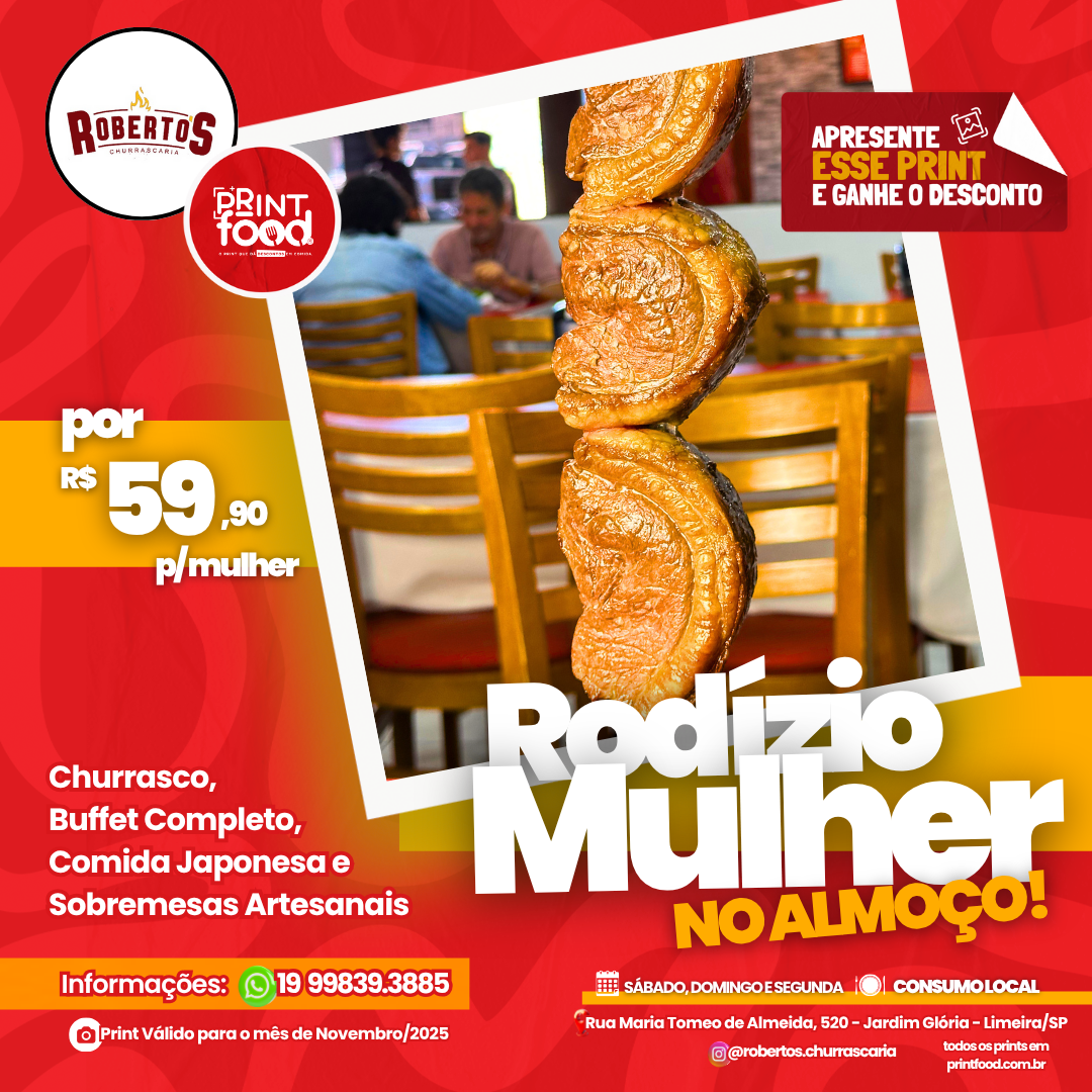 RODÍZIO MULHER - Rodízio para mulheres no almoço