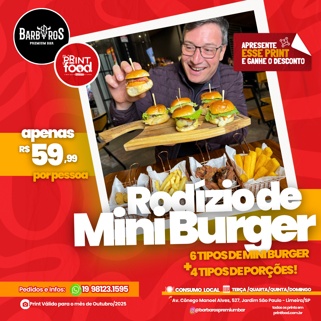 MINI BURGER BARBAROS - Rodízio individual de Mini Burger + Porções