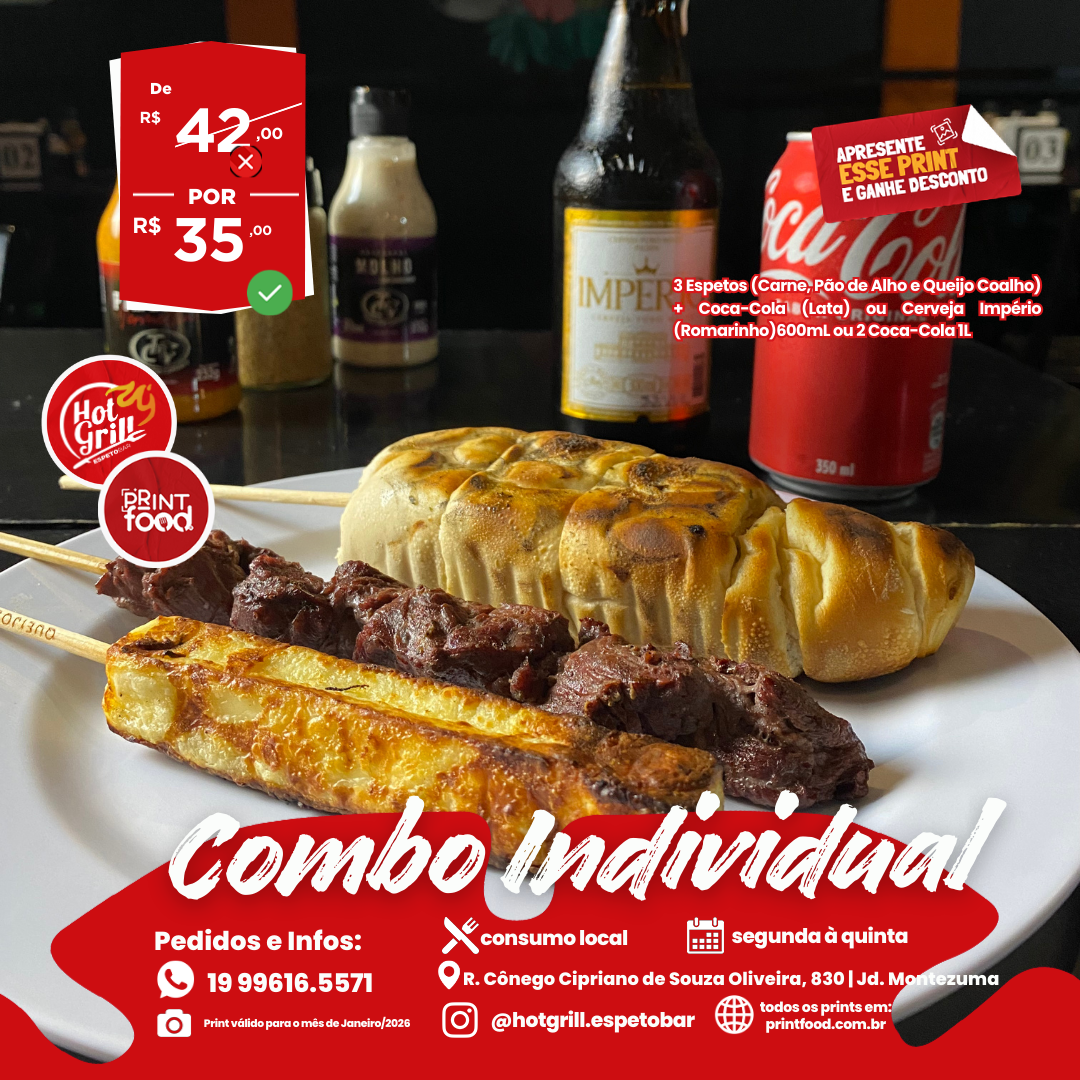 COMBO INDIVIDUAL - 3 Espetos + acompanhamentos