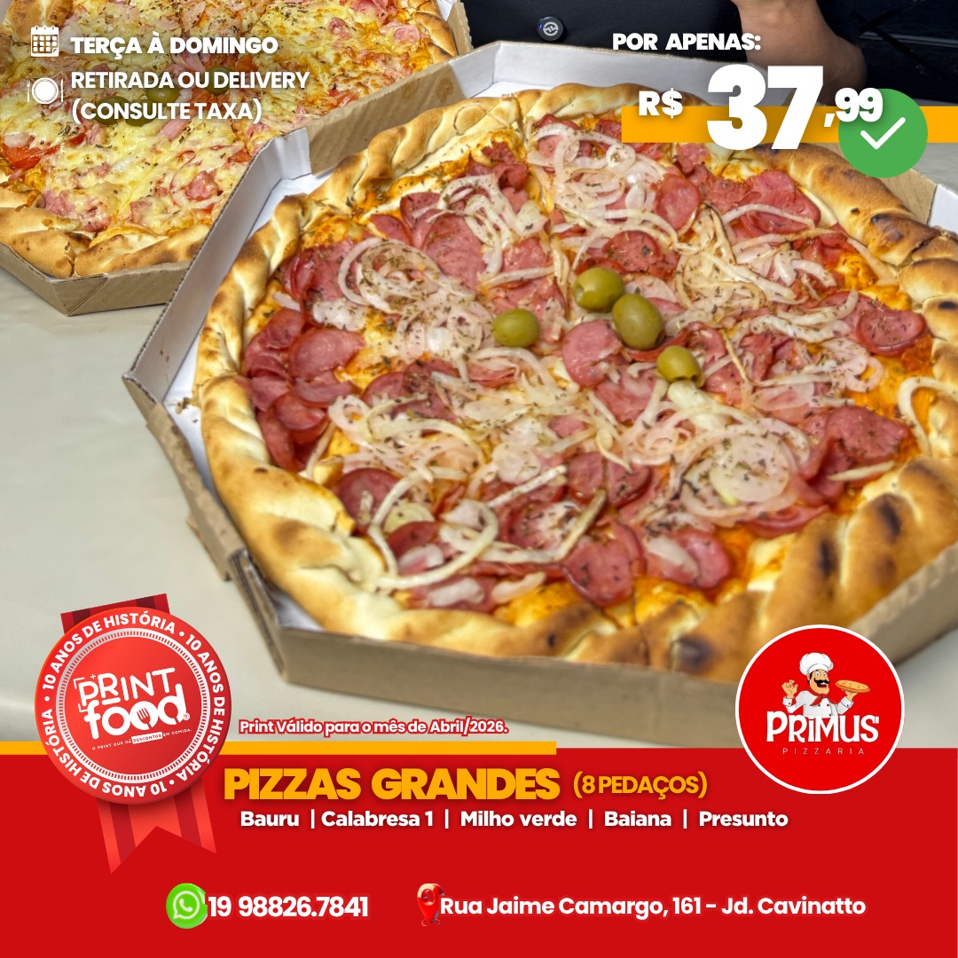 PIZZAS GRANDES - Pizzas grandes 8 pedaços - Bauru, Calabresa 1, Milho verde, Baiana e Presunto