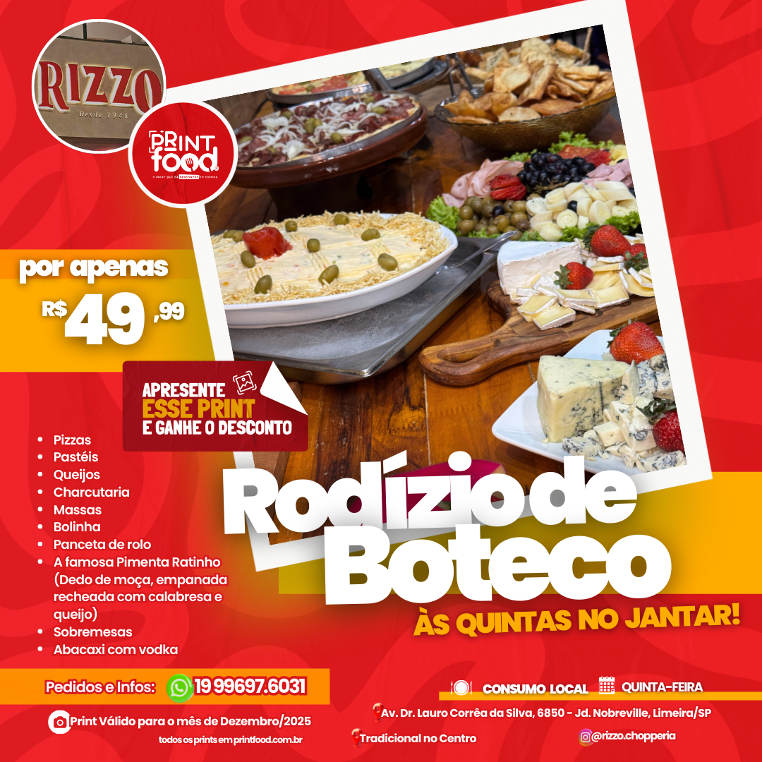 RODÍZIO DO RIZZO - Rodízio de boteco ás quintas no Jantar
