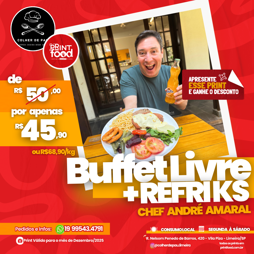 Buffet Completo - Com saladas, guarnições e pratos principais