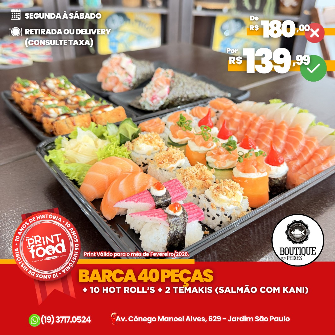 BARCA SALMÃO - Barca P - Salmão 22 itens + 1 porção de Hot com 1o unidades