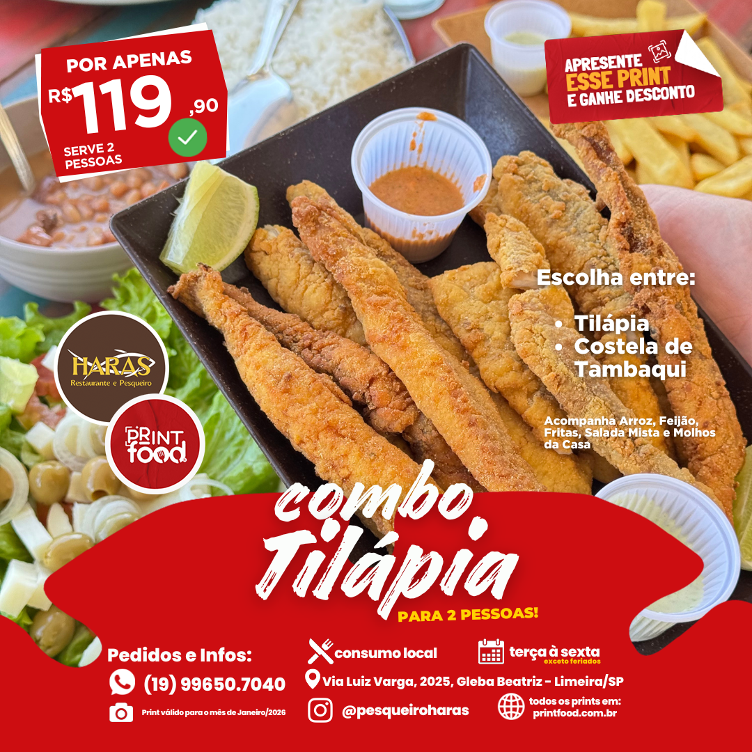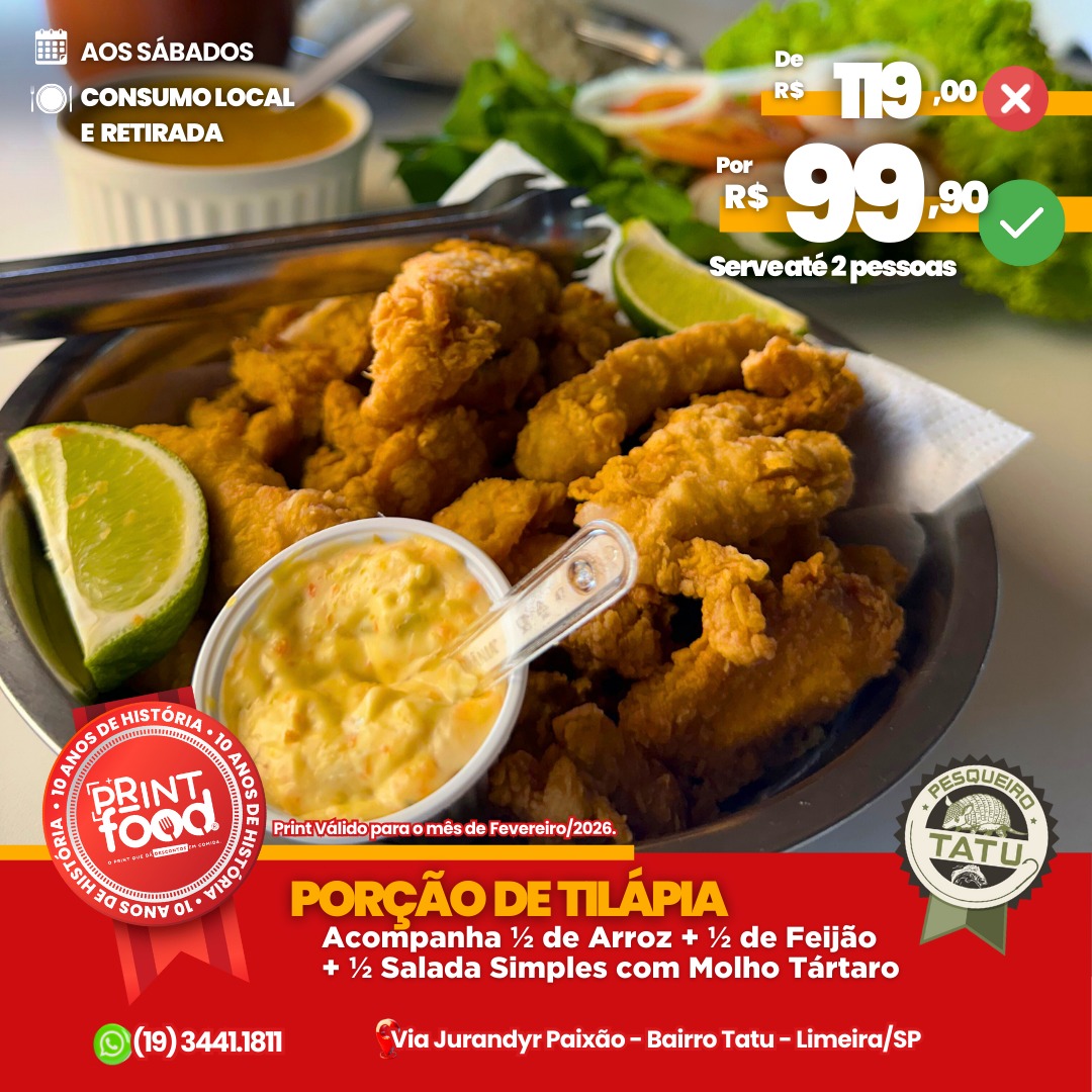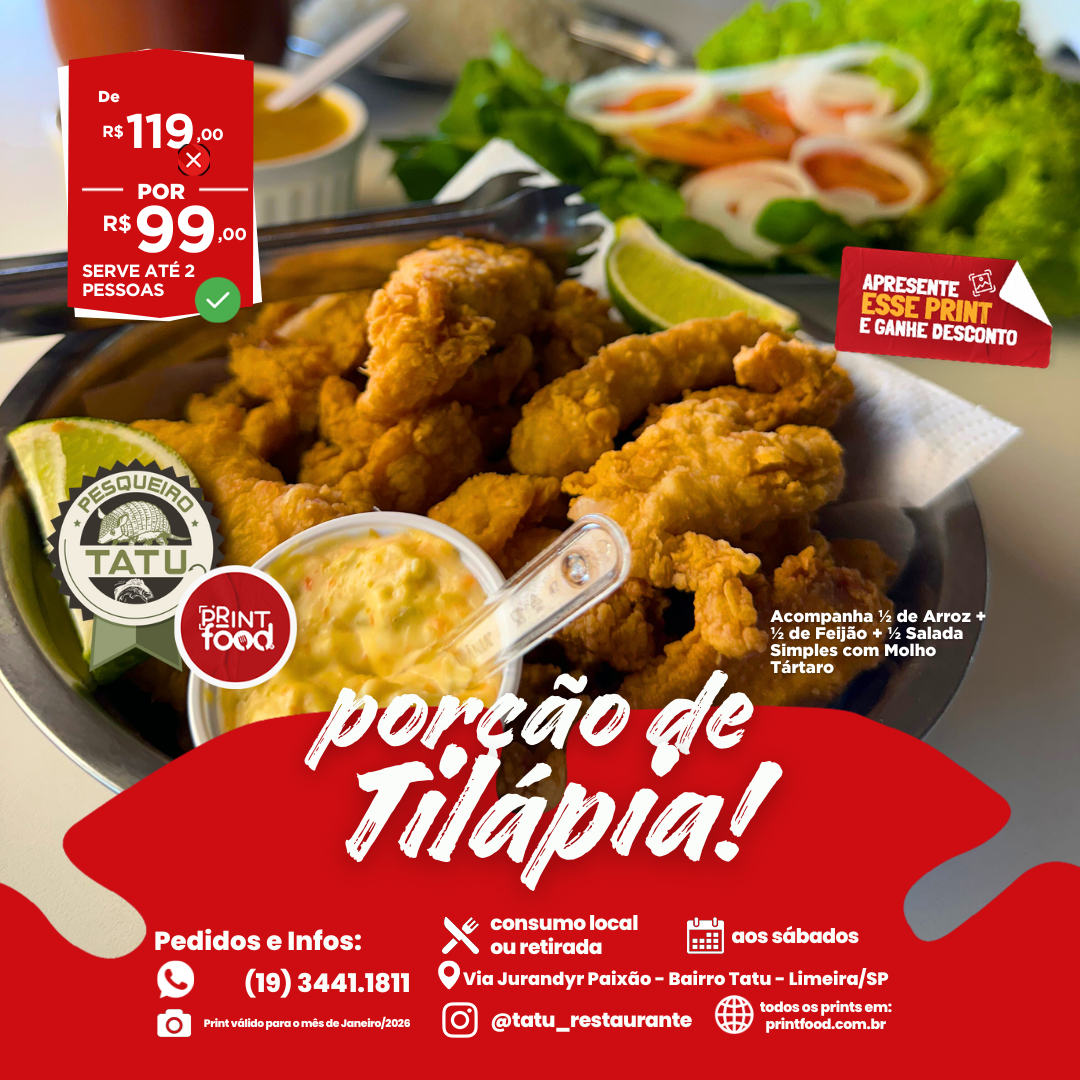 PORÇÃO DE TILÁPIA - Porçao de Tilápia + Acompanhamentos
