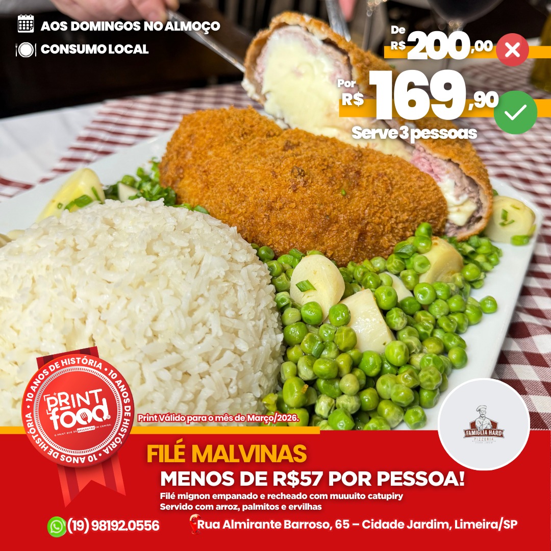 MALVINAS - Filé Malvinas serve até 3 pessoas + Acompanhamentos