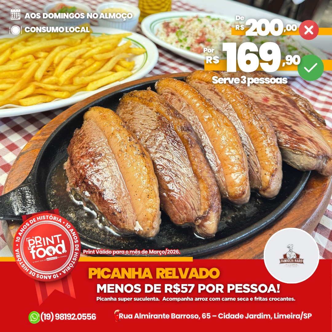 RELVADO - Picanha Relvado serve até 3 pessoas - menos de 57 reais por pessoa!